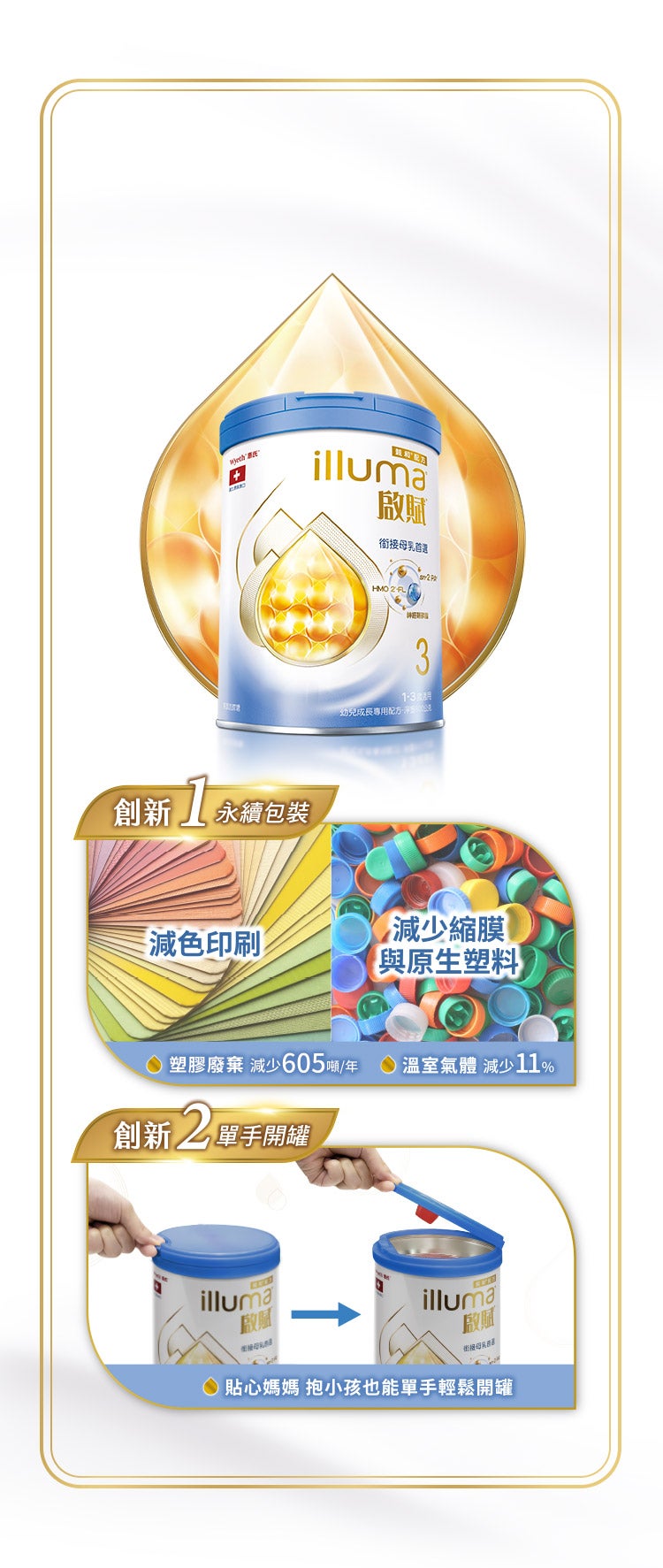 *相較於一般以植物油作為脂肪來源的配方相比,其sn-2佔全棕櫚酸僅10-15%,啟賦3含32%。 **源自牛乳有超過200+種以上常見營養素 1. 惠氏營養品自 1915 年研發全球第一個現代化配方以來,始終致力於寶寶的健康與營養 2. 惠氏投入活性研究有高達40篇研究期刊發表 3. sn-2 乳脂保護球相關研究針對寶寶餵哺、睡眠、便便、活力、成長與學習發展六大面向