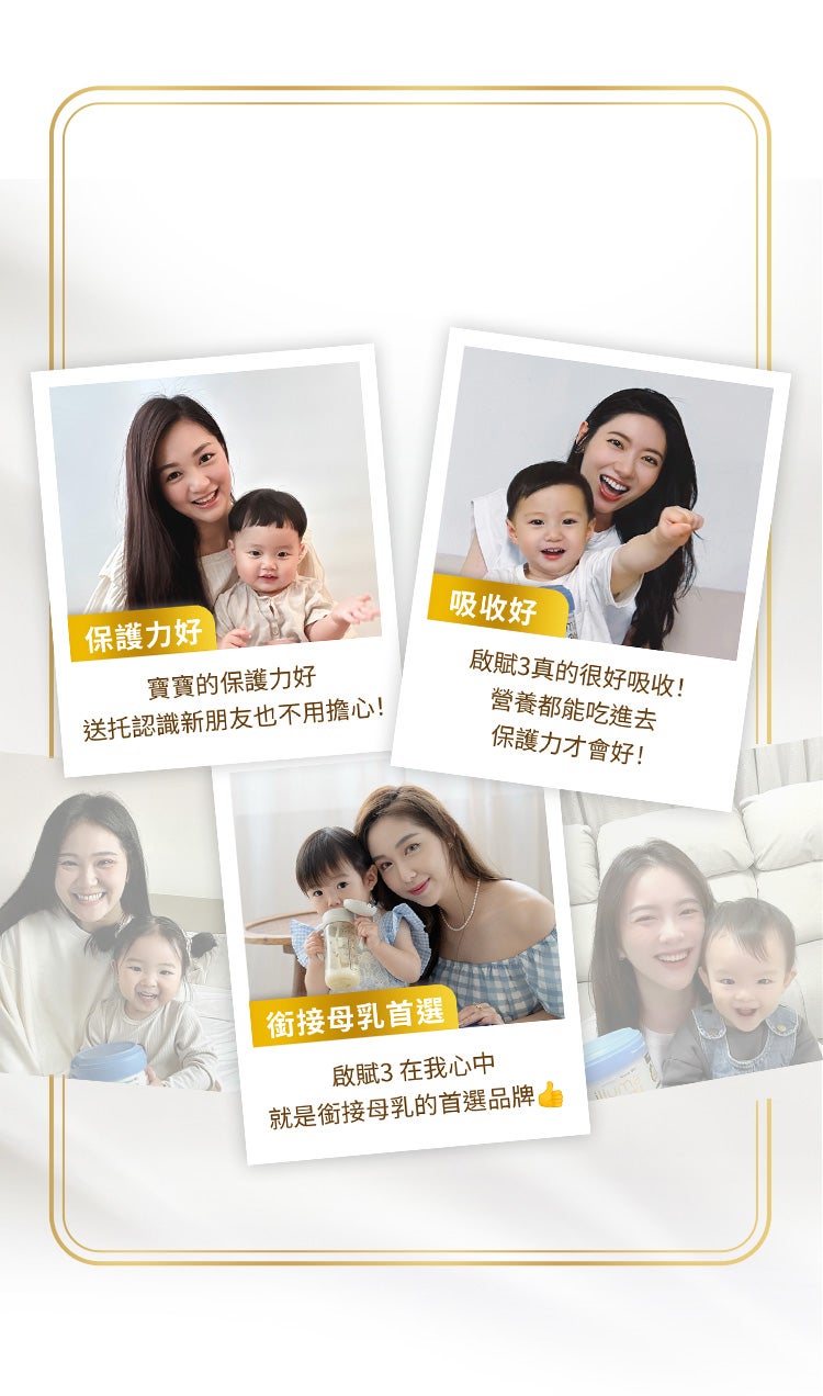啟賦3在全球持續研究銜接母乳科技,讓我能放心推薦,安心使用!